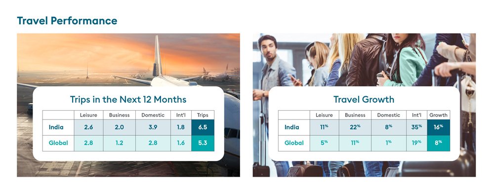 Indian travellers expect 16% growth in travel frequency over the next 12 months, compared to a global average of 8%. That means that of those surveyed for AX24, each Indian passenger is predicted to make an average of 6.5 trips in the year ahead.